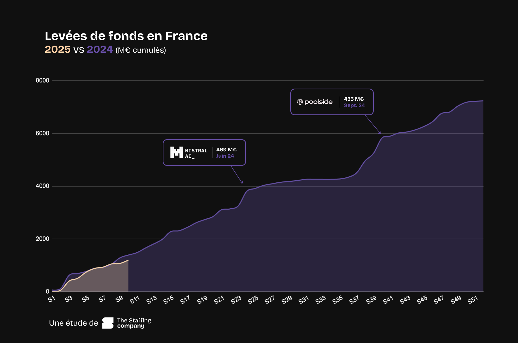 La semaine dernière a vu un rebond significatif des levées de fonds, avec 127 millions d'euros levés à travers 11 opérations. Ce montant est bien au-dessus de celui de la semaine précédente, mais reste en dessous de la moyenne hebdomadaire de 2025 (120 M€).