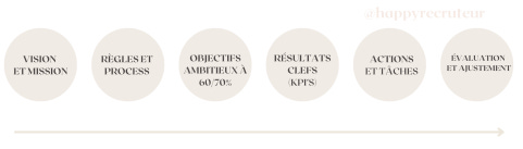 Cela inclut la fréquence de fixation des OKR (hebdo, mensuel, trimestriel, annuel), le processus de création et de suivi des résultats clés.